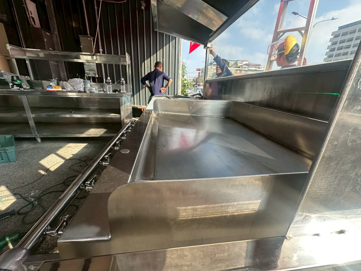 牛排煎板製作現場安裝,鐵板附中鋼品質證明書,提供無放射性污染證明書,尺寸、厚度依實際營運需求訂製